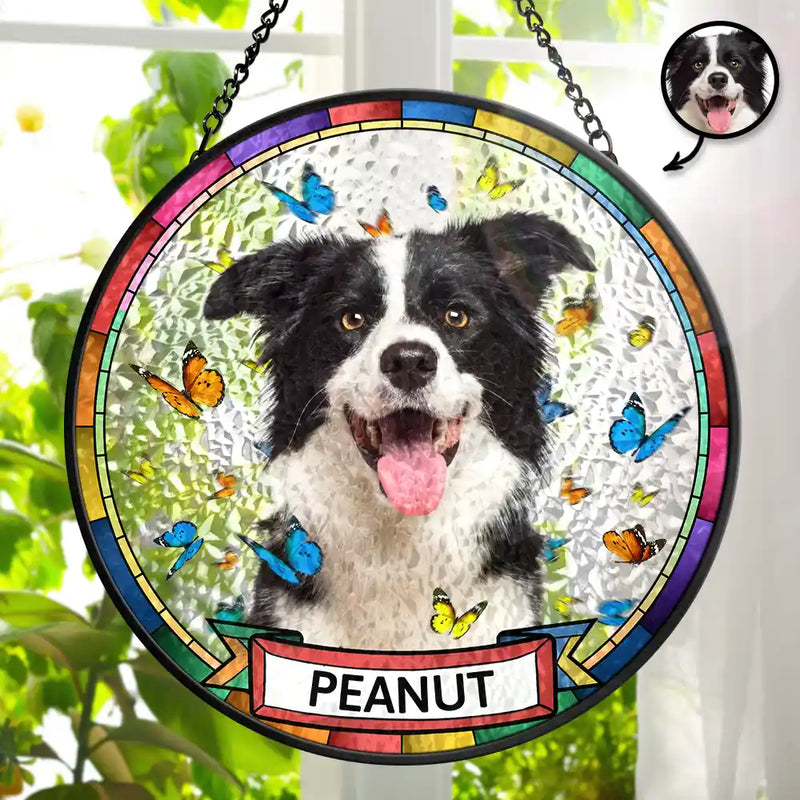 Custom Photo Butterflies Dog Cat - Personalized Stained Glass Window Hanging Suncatcher