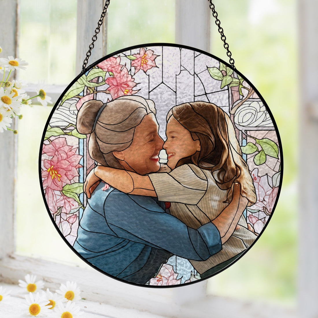 Custom Photo Portrait Mom Grandma Parents Family - Personalized Stained Glass Window Hanging Suncatcher