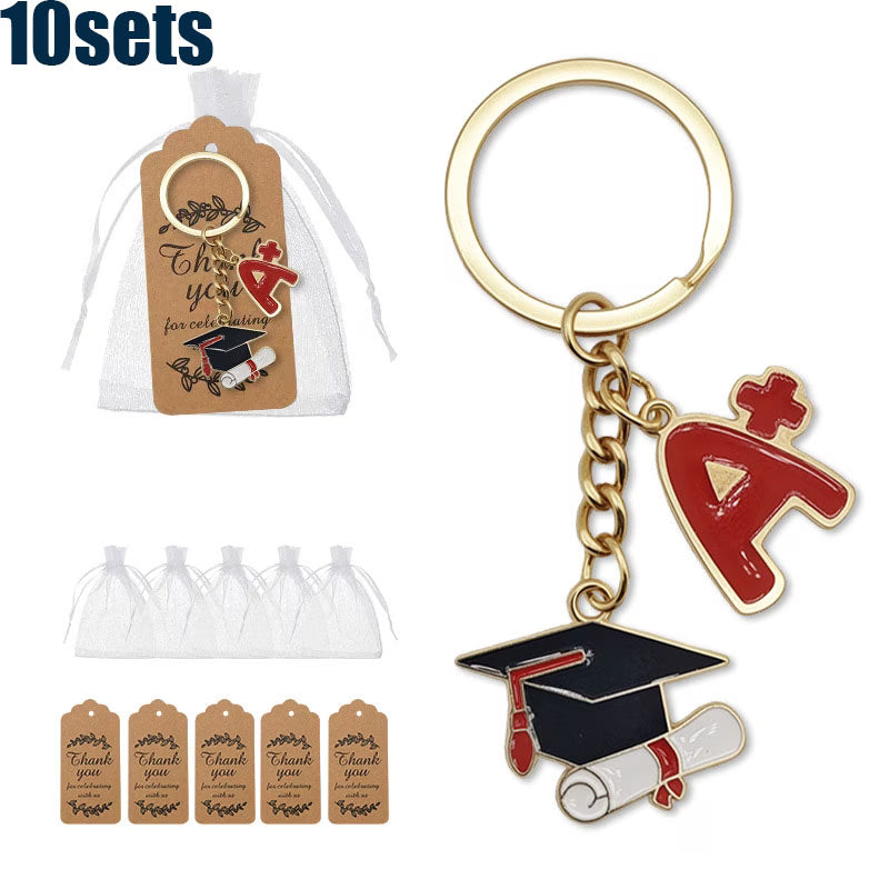 Lot de 10 porte-clés Bonnets de Diplômé et A+ avec cartes cadeaux et sacs en gaze