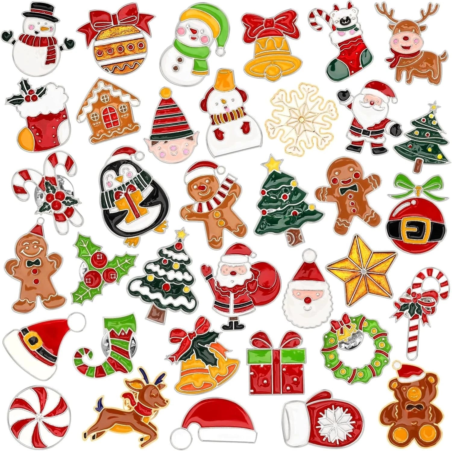 36 PCS Christmas Enamel Brooch Pins Bulk Santa Claus Snowman Reindeer Wreath Elk