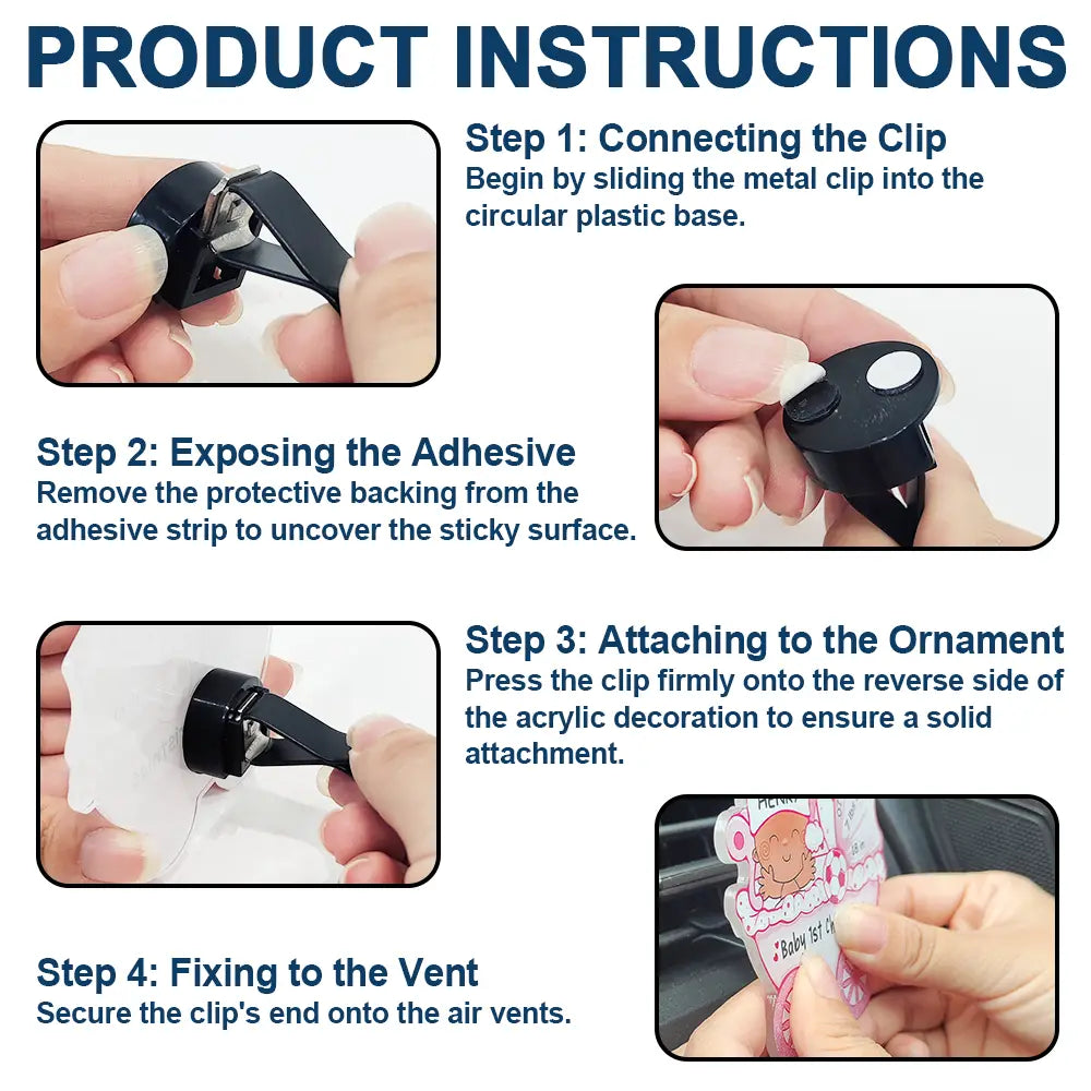 - Package included: 01 acrylic car vent clip, 06 double-sided adhesive pads (not pre-applied), and a simple instruction guide for easy attachment.