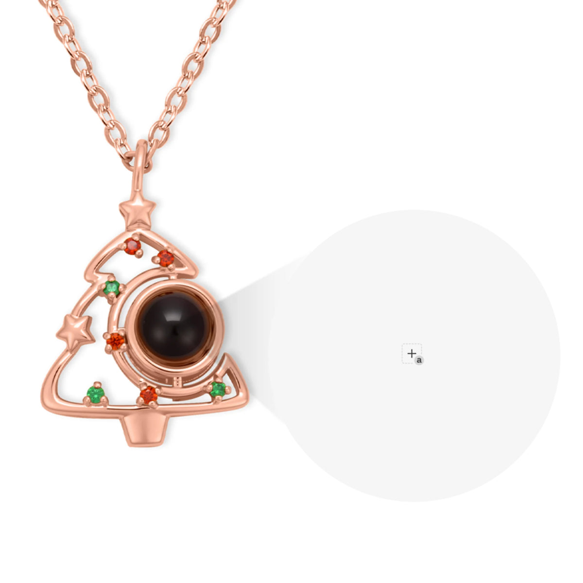 The Christmas Tree Projection Necklace transforms memories into magic. Customize the projection stone with your precious photo and choose from gold, rose gold, or platinum plating. Featuring a festive Christmas tree adorned with tiny stars and colorful gemstone accents, this necklace beautifully captures the holiday spirit. When light shines through the projection stone, your photo appears vividly—turning this piece into a one-of-a-kind keepsake. ✨