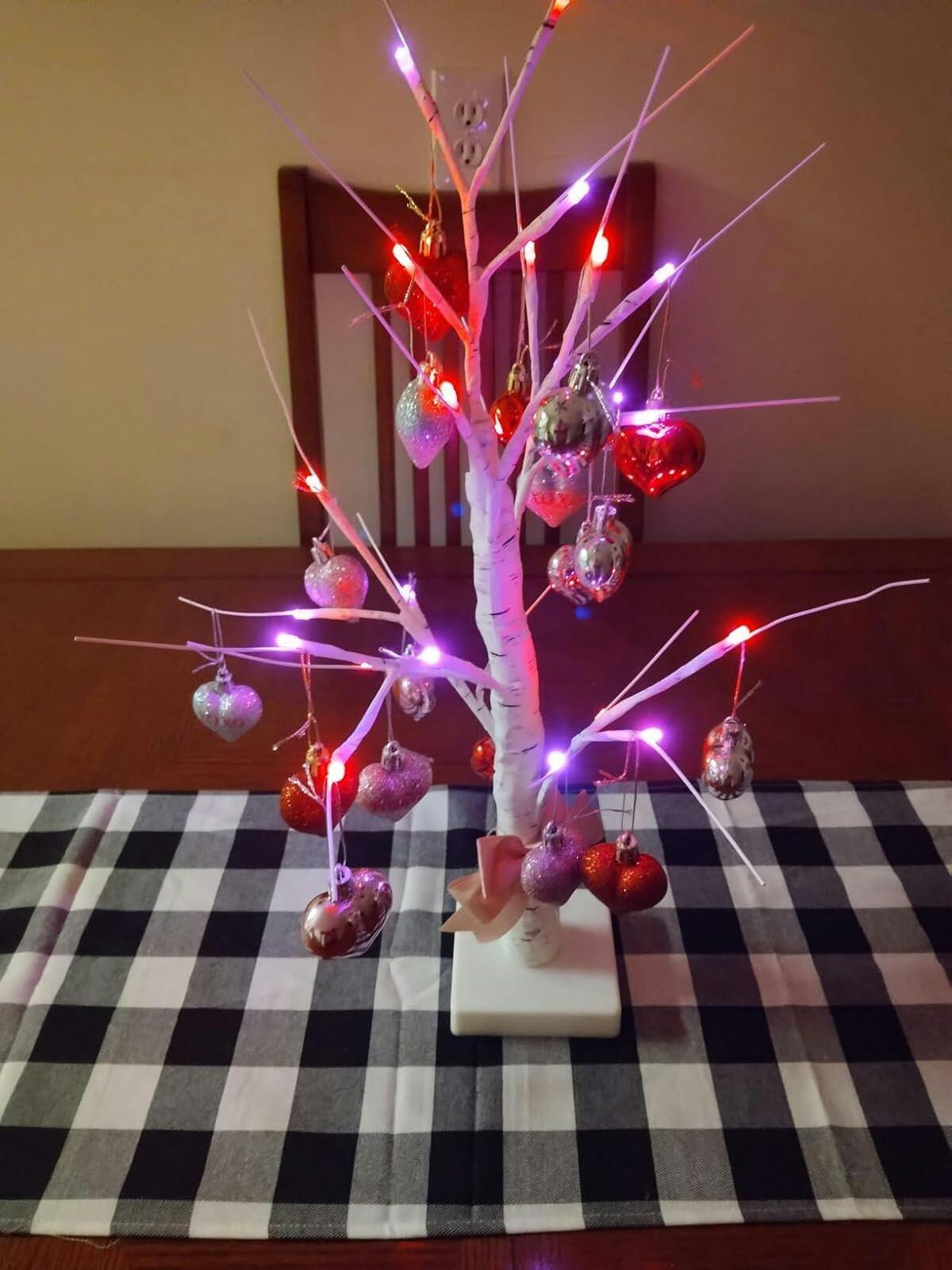 Romantic Heart-Shaped Birch Tree Lamp With 18 Heart Ornaments