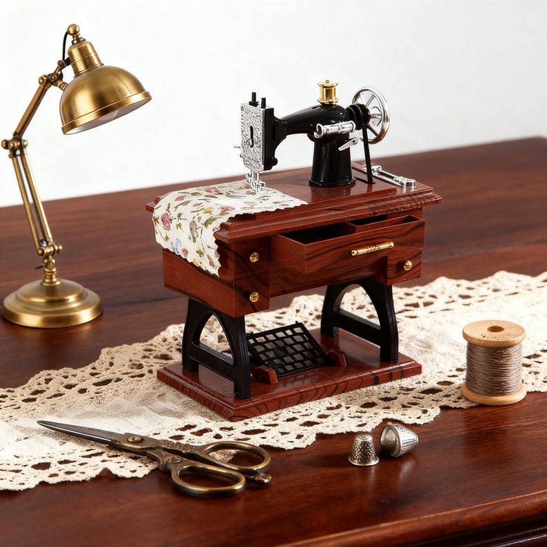 This vintage sewing-machine music box brings those memories back to life, turning nostalgia into a beautiful keepsake you can hold in your hands.